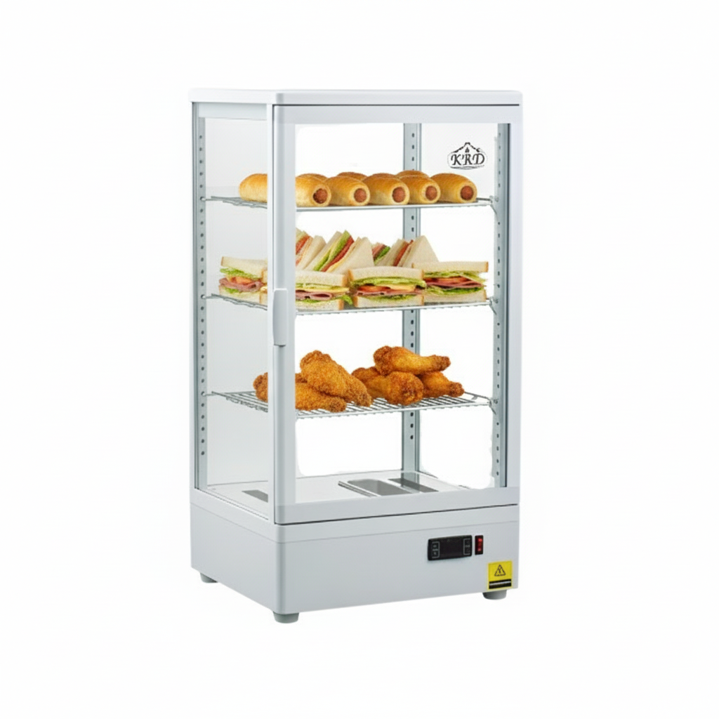 KRD Countertop Heated Display Cabinet Warmer 78 litres 3 shelves White 1 Hinged door XCR78L