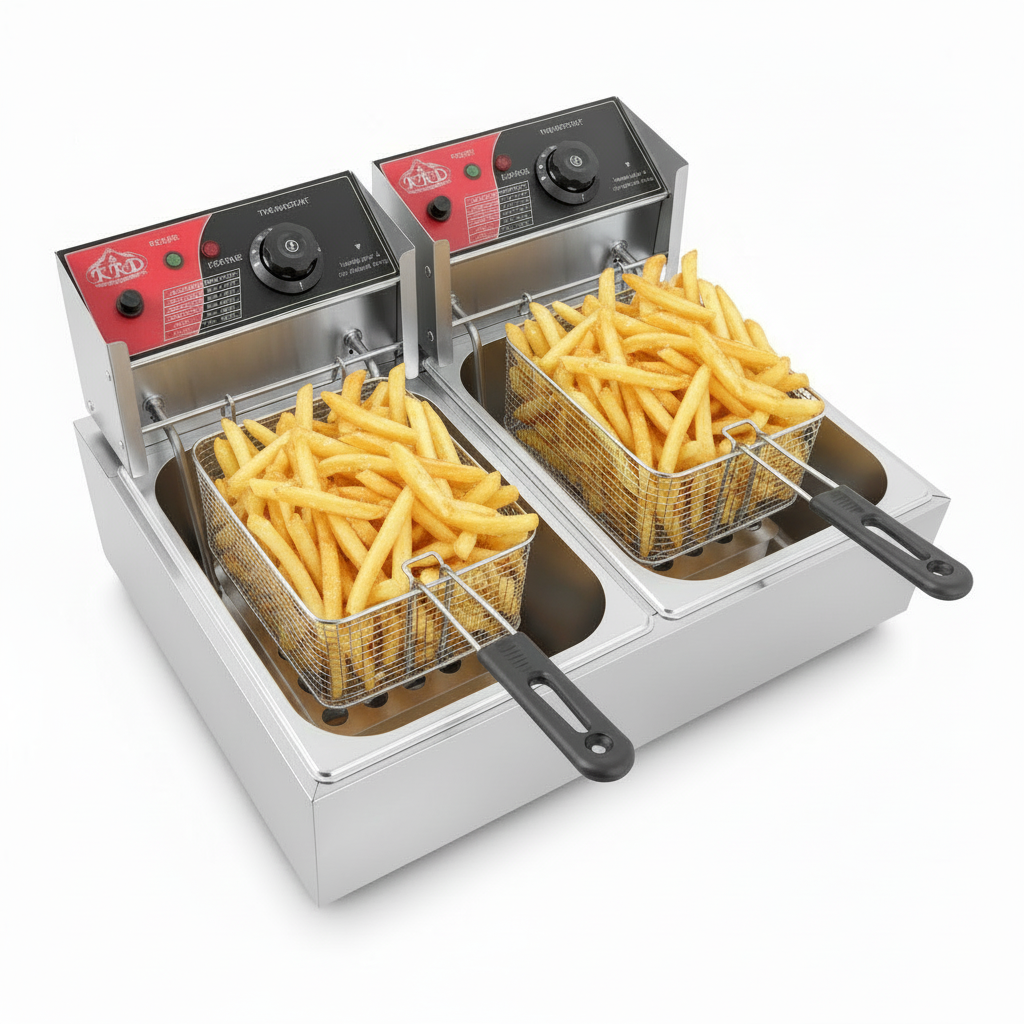 A compact, powerful double fryer designed for busy takeaways, cafés, restaurants and mobile catering. Despite its small footprint, it offers two independent 6 litre tanks with separate controls, allowing you to fry different foods at the same time without flavour transfer.