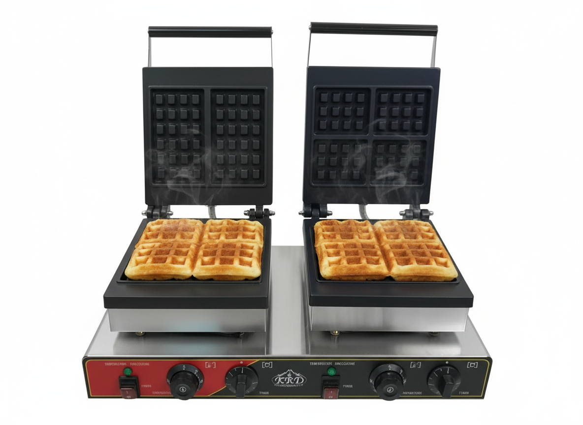 KRD Heavy Duty  Commercial Square 2-Plate Waffle Maker 1750W+1750W  KRW-6 featuring stainless steel construction and dual cooking plates.
