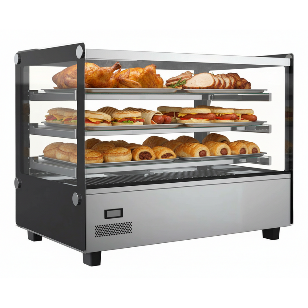 Heated Displays Merchandisers are used in commercial catering environments to hold and present hot food at safe serving temperatures during service. These units are commonly installed in cafés, restaurants, takeaways, bakeries and food service counters where visibility and temperature control are essential.