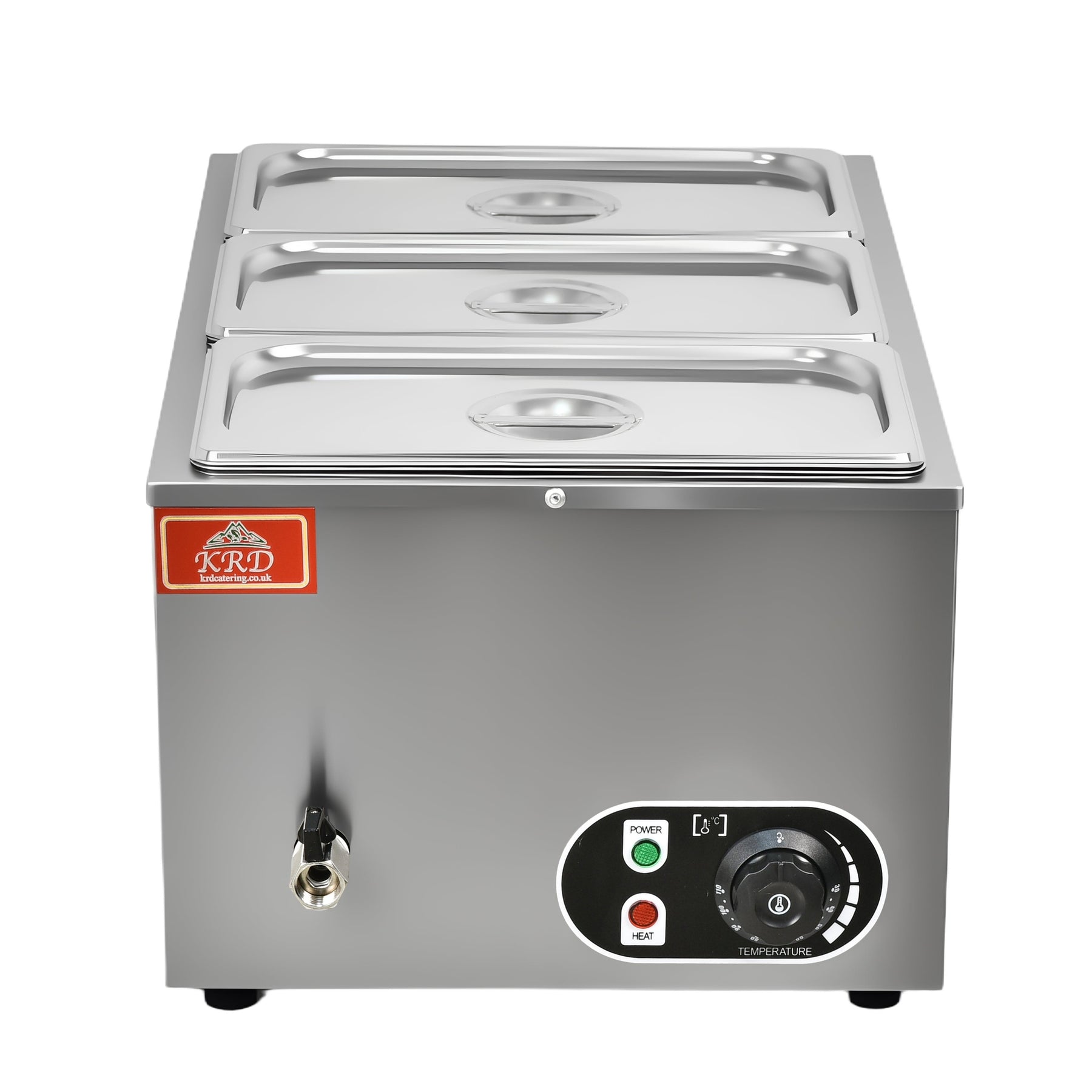 This professional wet-heat warmer is a must-have for catering, keeping large quantities of food at a consistent, ready-to-eat temperature. It's meticulously designed to provide reliable and even heating.