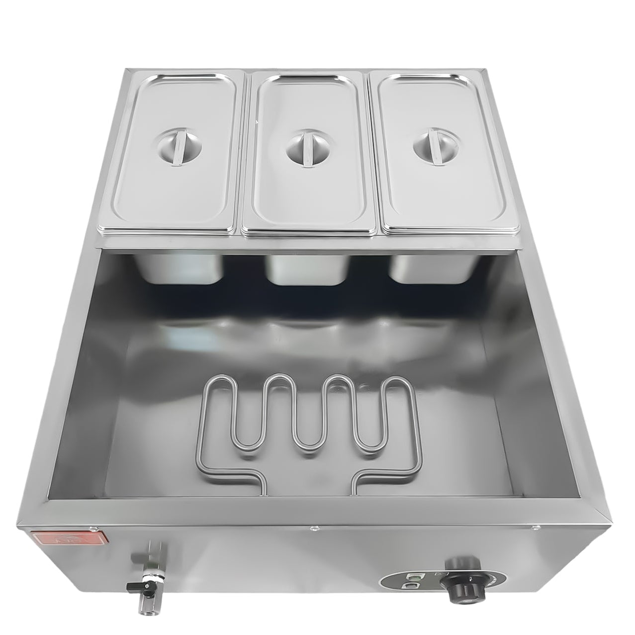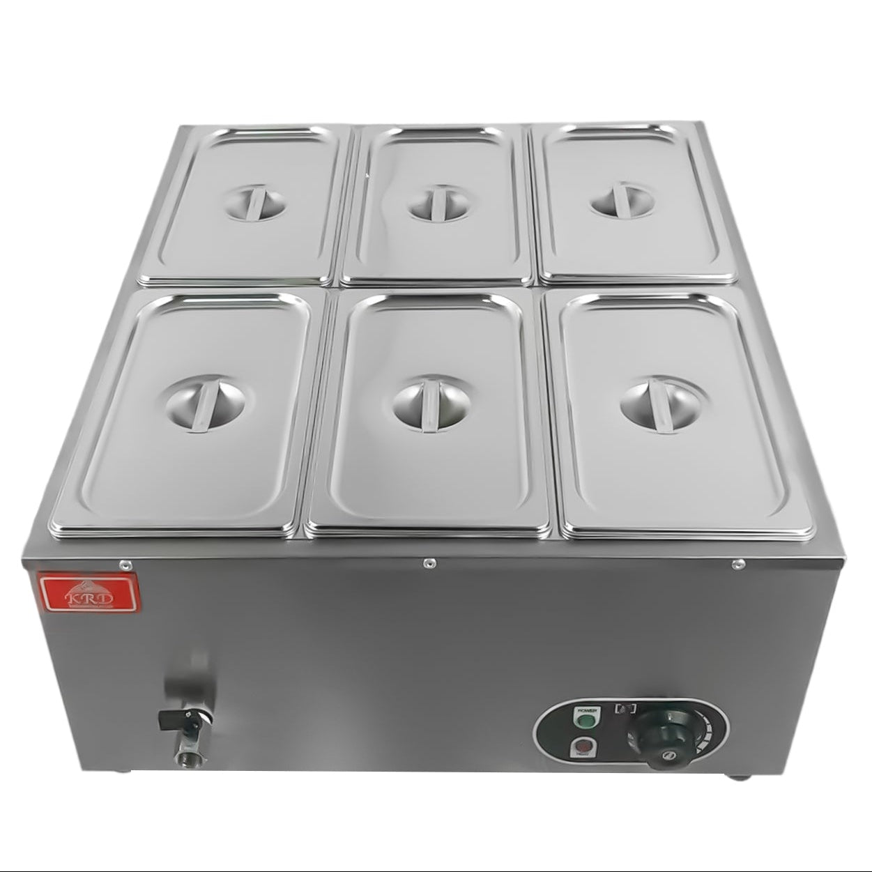 This professional wet bain marie is an essential catering tool for maintaining large quantities of food at a steady, service-ready temperature. It is engineered to deliver dependable and uniform heat throughout.