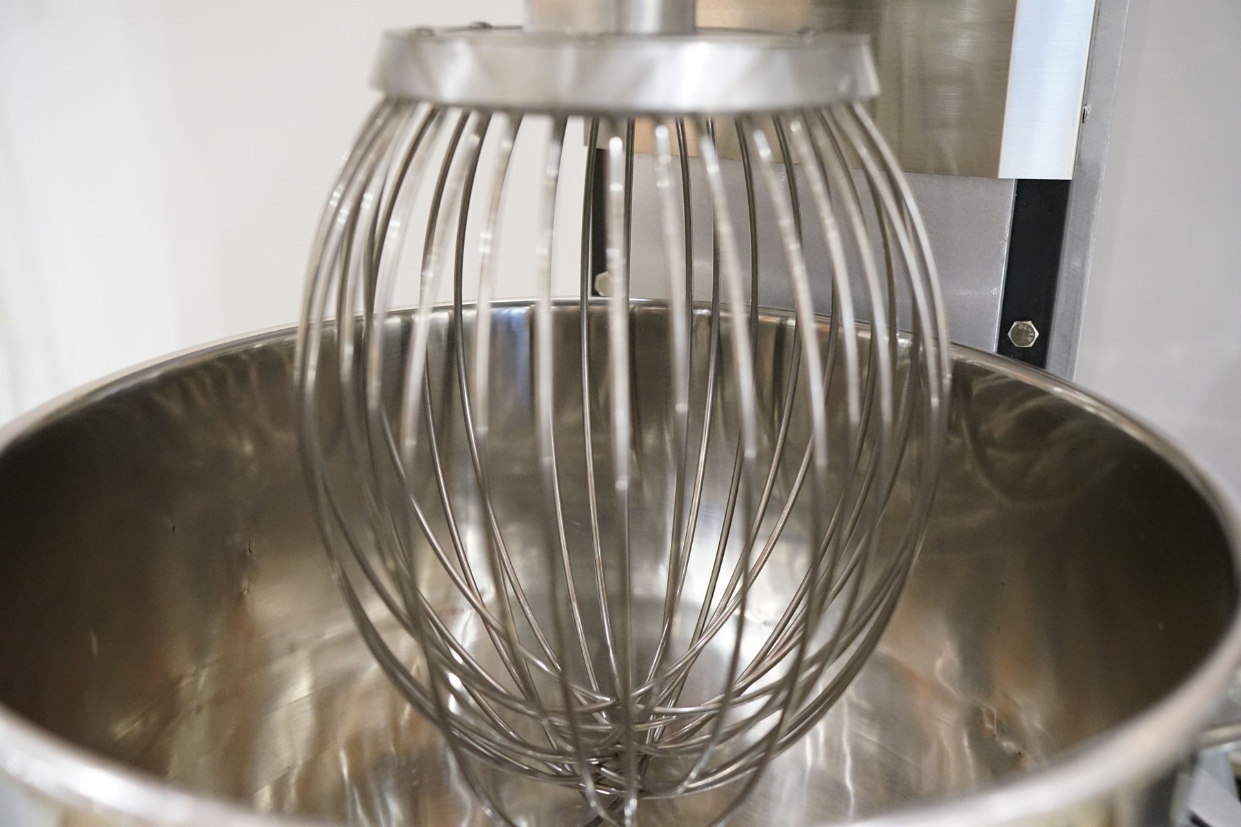 Designed with versatile functionality for commercial catering businesses, the 80 litre Planetary Mixer offers exceptional value and is ideal for bakeries, pizzerias, and restaurants. Its uses range from a food processor to a bakery, stand, and dough mixer, all with the added safety of stainless steel guards. The mixer boasts three speeds and a capacity of 80 litres, along with stainless steel attachments for whisking, dough kneading, and mixing.