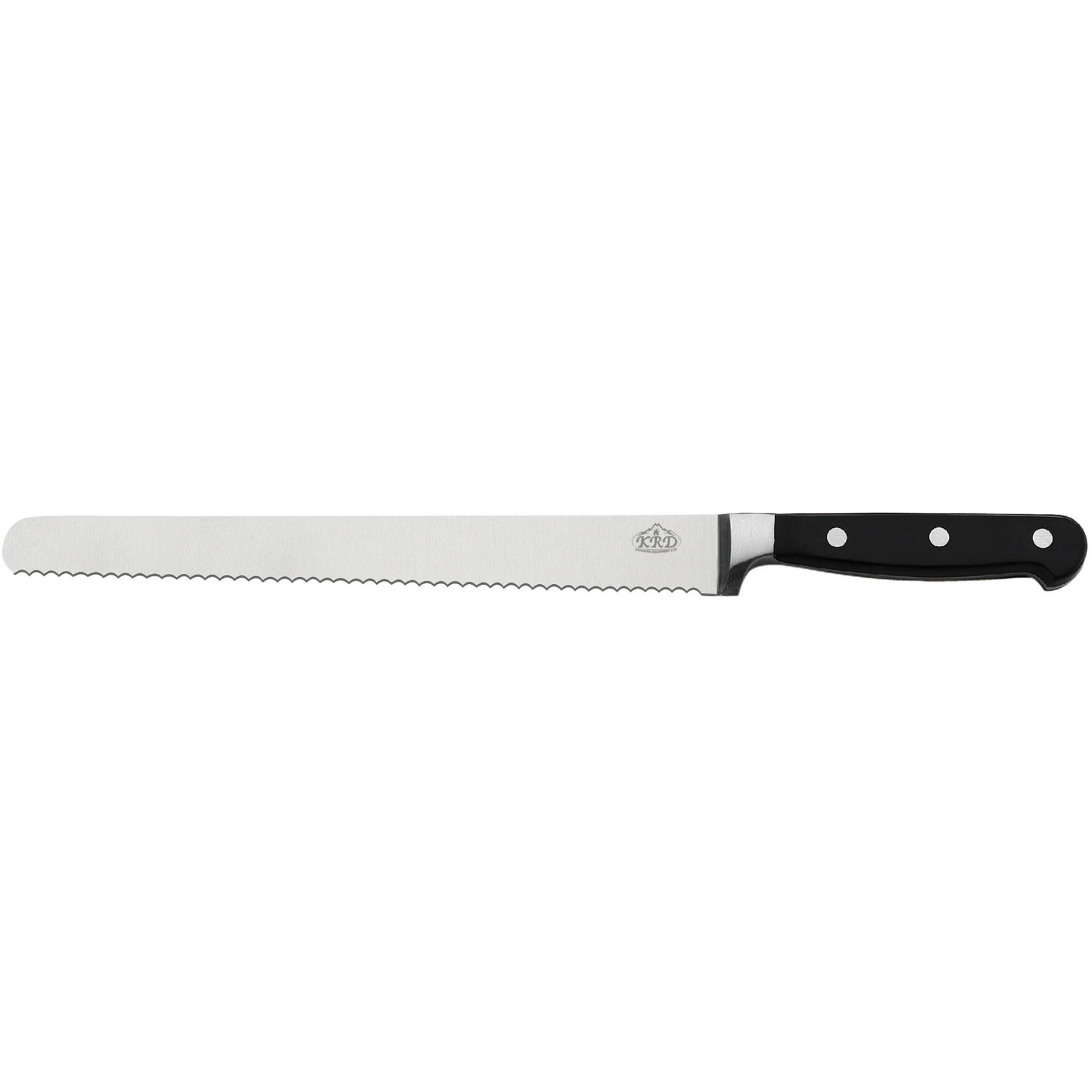 KRD 30cm Serrated Slicer Knife 2.5mm Thickness Black Handle bread slicer 502E601, stainless steel blade for precise slicing.