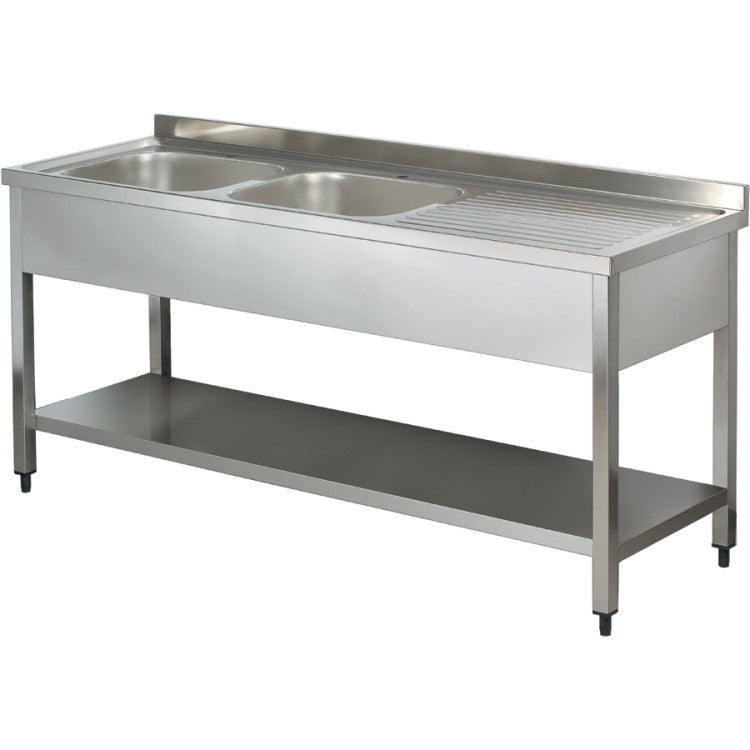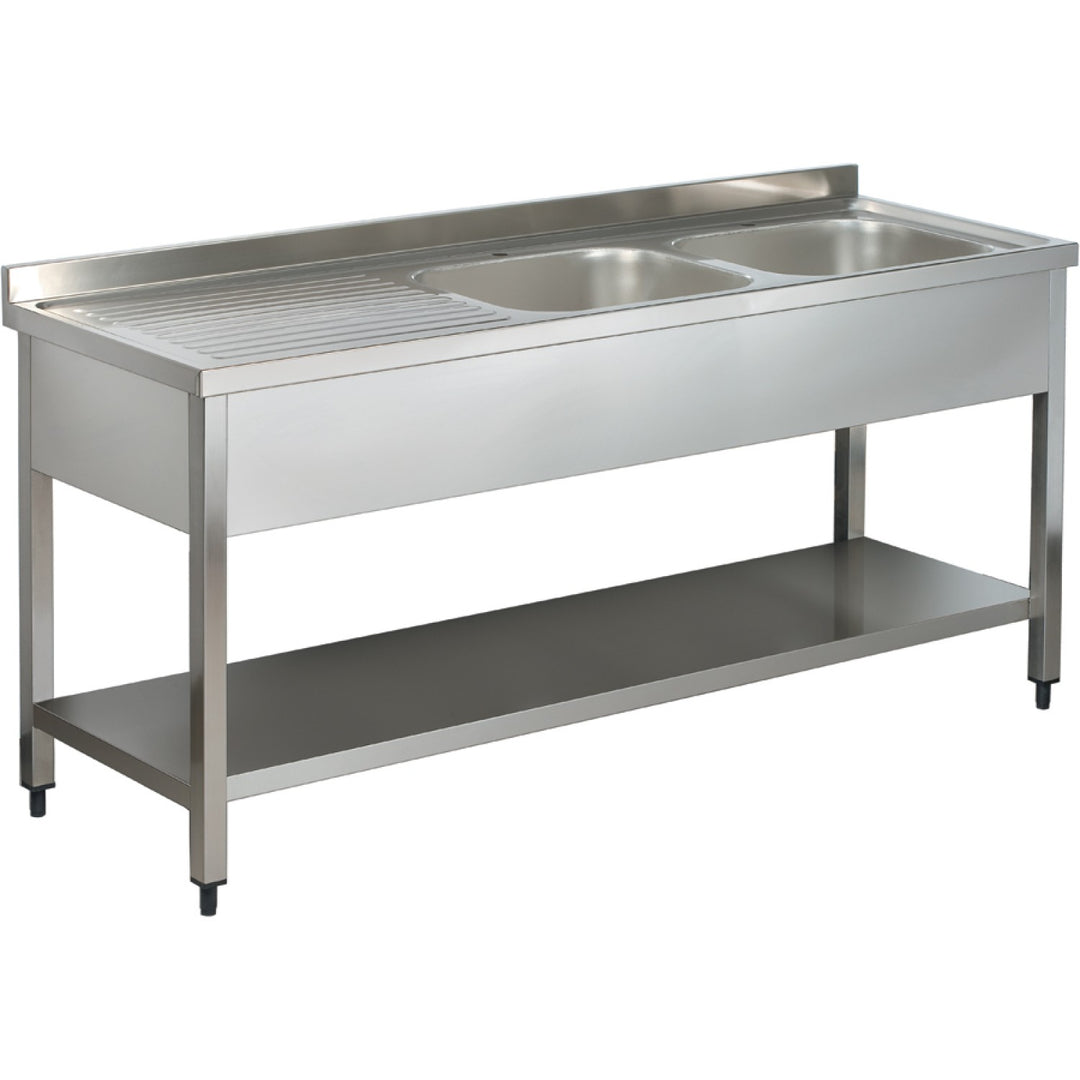 Commercial Sink Stainless steel 2 bowls Right Bottom shelf Splashback 1800mm Depth 700mm