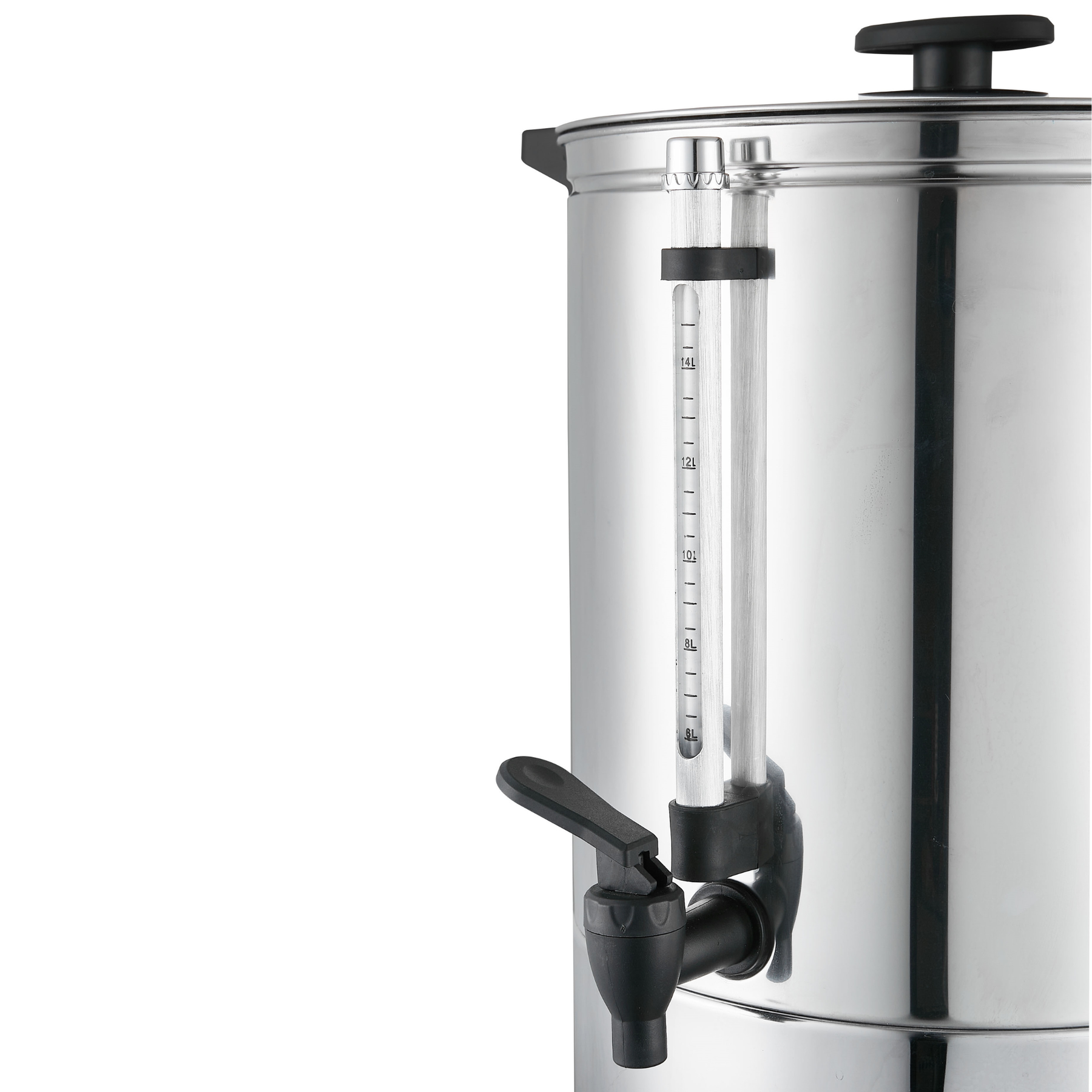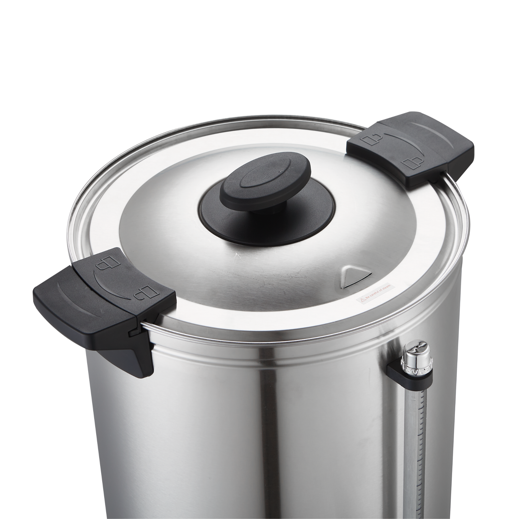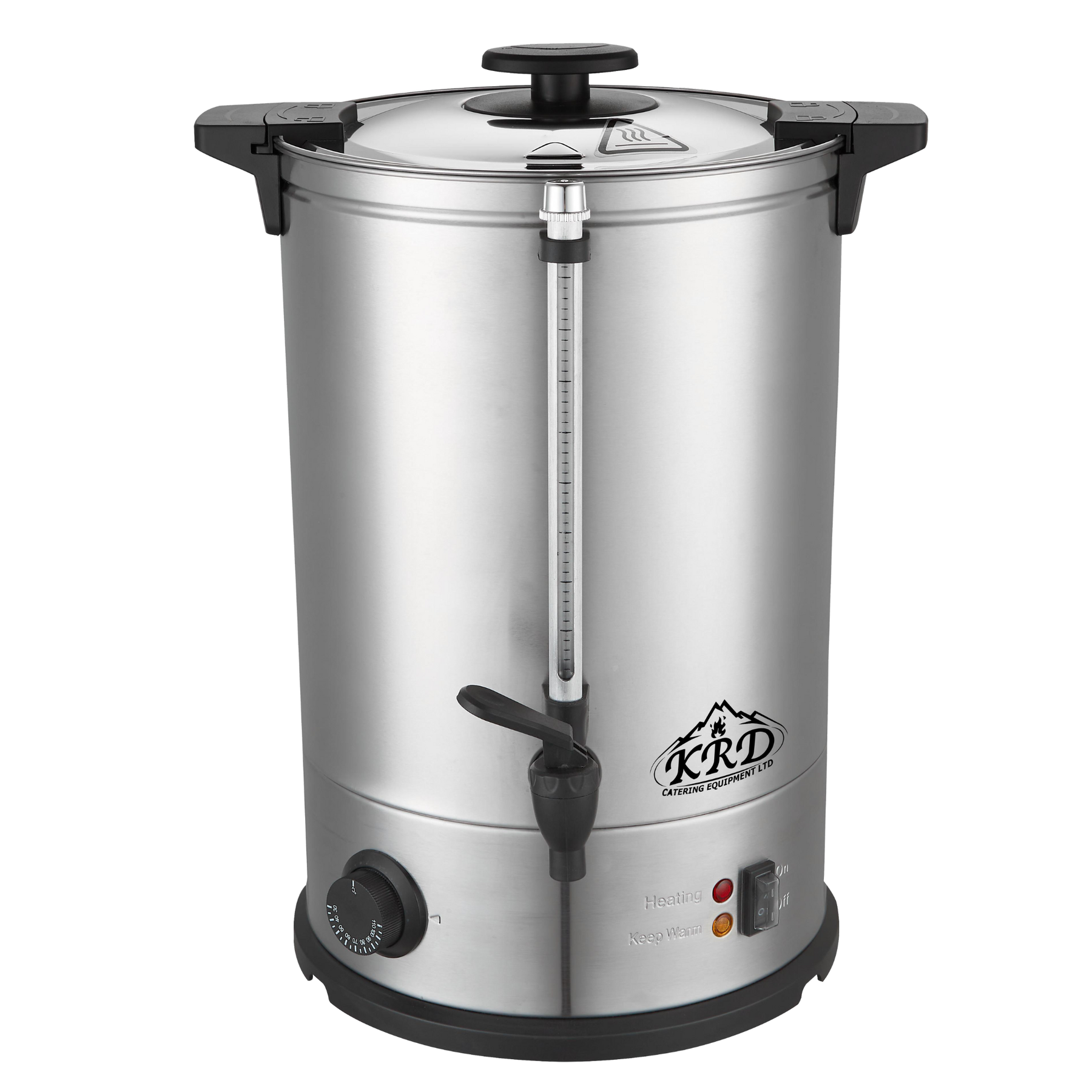 KRD Electric 10L Hot Water Boiler Double Wall Tea Urn KWB10L lid and anti-drip tap for safe operation.