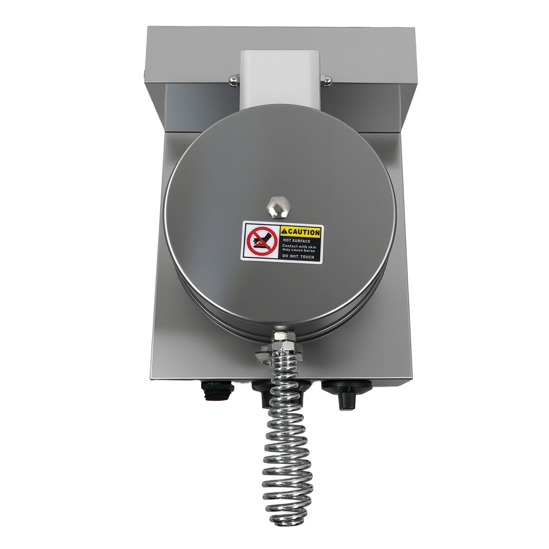 Back view of KRD Heavy Duty 1-Plate 4-heart electric waffle machine 1200W KR-HW4 with stainless steel finish.